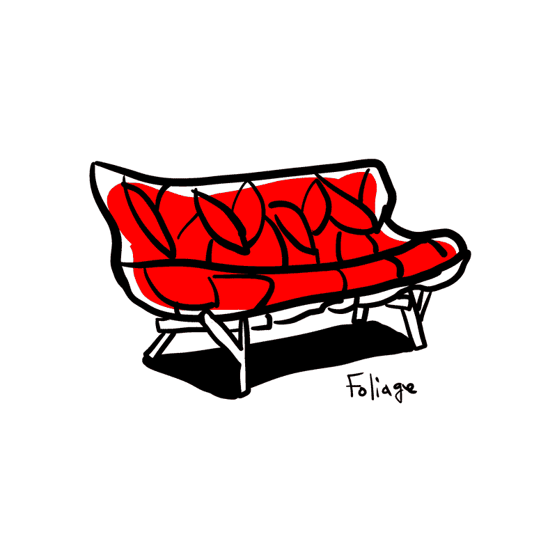 以前、都内のどこかで家具ショウを見ていたら、すごい印象的なソファーがあって。