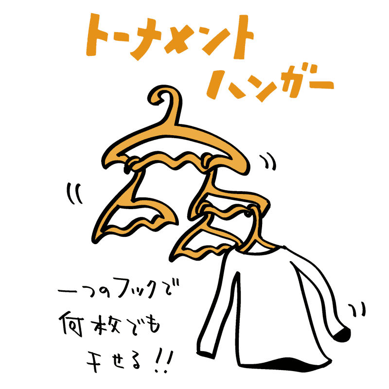 ハンガーを掛けられるところが少ないときにつなげられるハンガーのアイデア。