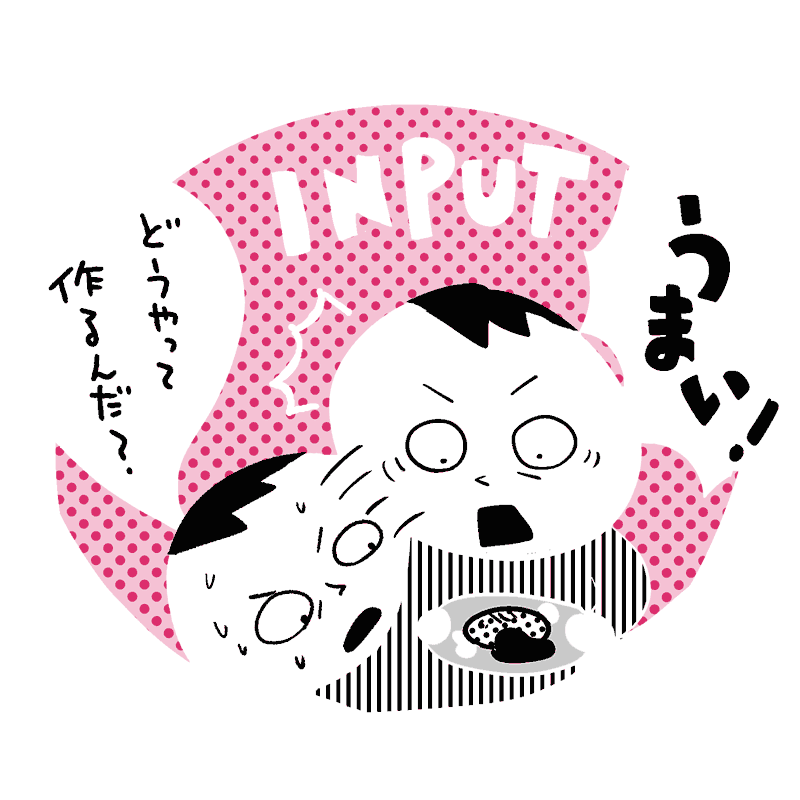 美味しいものを食べるのが、インプット。
