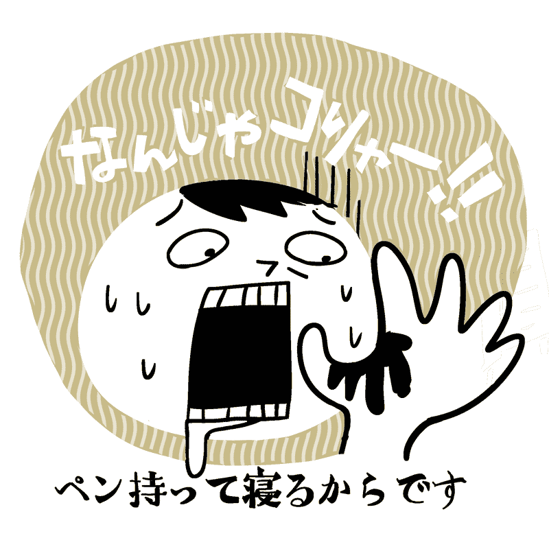 仕事中、ペンで書いている途中に意識をなくして、手がインクで真っ黒になってしまってもしょうがない。